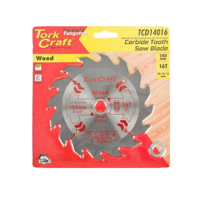 Tork Craft | Saw Blade TCT 140X16T 20/16/13mm General Purpose Rip for Wood