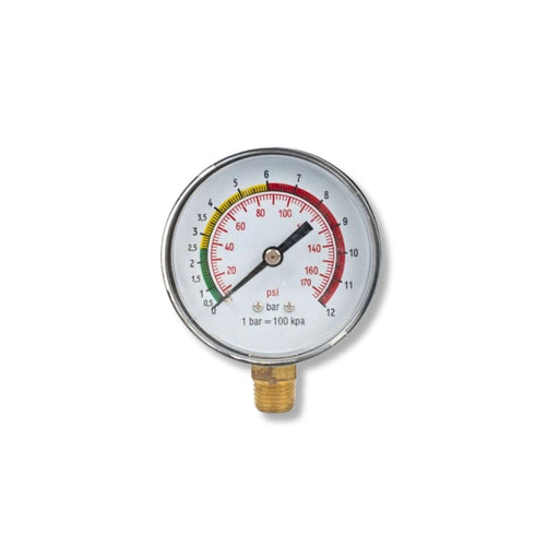 63mm Pressure Gauge Bottom Connection Measurement range: 0 - 12 Bar Bottom connection with 1/4" BSP male thread Made in Italy