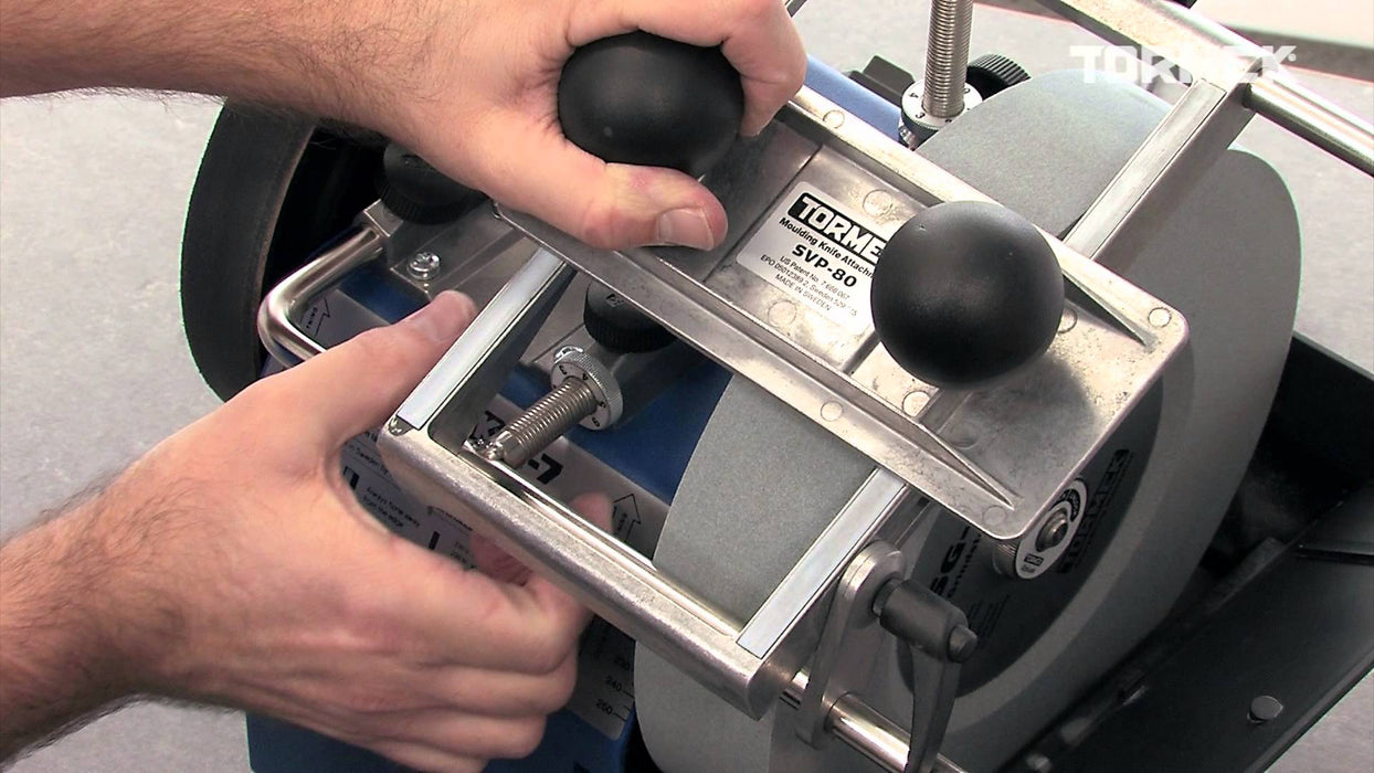 The Tormek SVP-80 Moulding Knife Jig Attachment is designed to sharpen all shapes and makes of moulding knives with 24, 30 or 38 mm distance between guide hole centres. It sharpens the face of the blade and therefore any shapes can be done.