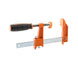 • Cast‑iron stationary and sliding heads with an orange, powder coated finish are merged with a high‑carbon, rust‑resistant steel bar that packs a whopping 80,000 pounds per square inch of tensile strength