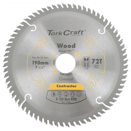 190X72T 30/20/16 TCT Contractor Saw Blade