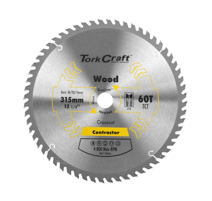 Tork Craft | Saw Blade TCT 315X60T 30/25,4/20/16mm Contractor Wood