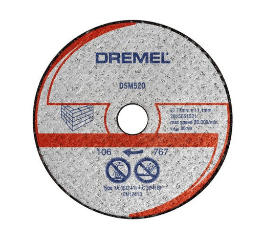 View full detailsDREMEL® DSM20 Masonry Cutting Wheel The DSM520 is a masonry cutting wheel This reinforced type 1 abrasive cut-off wheel is intended to make cuts ...