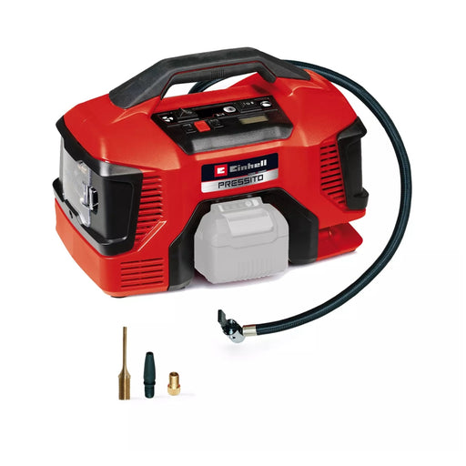 Einhell Germany AG A centre for ideas, quality and innovation The Einhell compressor Pressito 18/21 never runs out of air. Whether pumping or d...