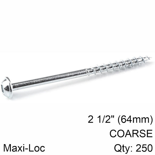 Zinc Pocket-Hole Screws: Maxi-Loc 2 1/2' (64mm) Coarse thread Qty:250 Kreg Zinc Screws are a good choice for a wide varie...