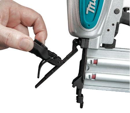 Additional features include an ultra-narrow nose design that is ideal for fastening in confined areas and a convenient “tool-less” depth adjustment dial that can be set for a wide variety of finish applications. For added convenience, the multi-directional exhaust port rotates 360 degrees to direct exhaust air away from the user. The AF506 is engineered for driving a range of 18 gauge brad nails from 16mm to 50mm into hard or soft wood applications and is ideal for trim work, baseboard and crown molding installation, flooring, and other woodworking applications.
