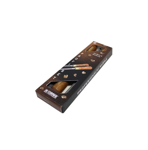 View full detailsNarex 250mm Woodworking Rasps in a set of three profiles. These rasps are all machine stitched in high carbon steel, fitted with Hornbeam Handles...