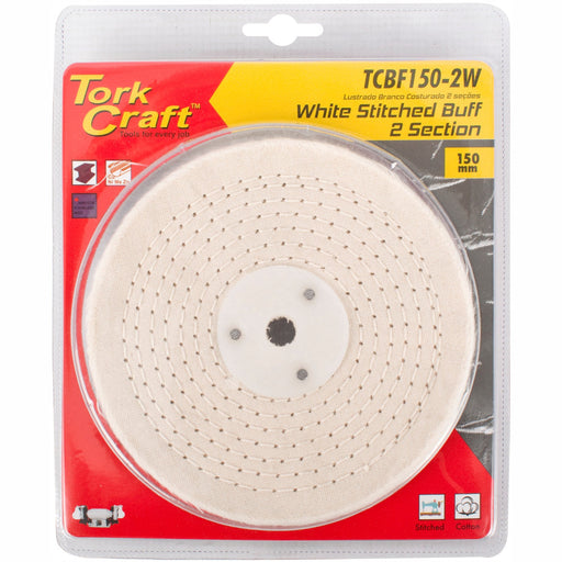 Stitched Buff/Mop Material: CottonWidth: 20mmDiameter: Ø150mmSections: 2Bore: Ø1/2"Usage: Use with cutting compounds Application: Different metals...