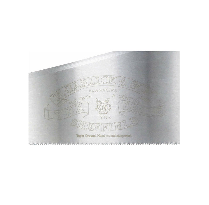 Thomas Flinn is the oldest remaining traditional hand saw maker in Sheffield, England. Thomas Flinn produces an extensive range of saws under famous traditional brands like Pax, Garlick, Lynx, William Greaves and Dorchester. This saw is co-branded Lynx/Taytools. Thomas Flinn is known for making reasonably-priced, professional-quality western-style hand saws. This saw is made from world-renowned Sheffield allow spring steel providing a good balance of edge durability and ease of sharpening.