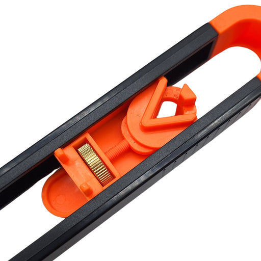 4 Way Equal Pressure Clamp Handles material up to 6" thick Perfect for gluing table tops, furniture panels, etc Includes 2 x 12 3/4" long notch...