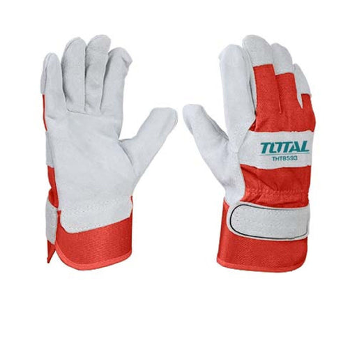 Size: 10.5" Used for carriers, machining operators, garden work etc. Cow split leather gloves Cotton back & rubberized cuff Half lining