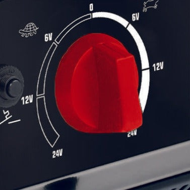 The CC-BC 15 battery charger is a universal charger for 6/12/24 Volt motor vehicle batteries. The charging voltage and the 2-stage charging rate can be set by means of an easily accessible turn-switch. The inbuilt ampere meter allows the quick and safe reading of the current charging rate. The strong and totally insulated terminal clamps grant an optimal contact to the battery terminals at any time, and the device can be transported safely due to its handy, stable handle.