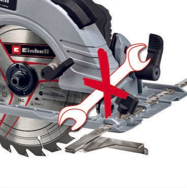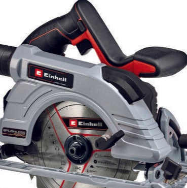 . The high-grade carbide saw blade delivers precise and clean cuts. The dust extraction adapter helps keeps the workplace clean. High-quality LED lighting ensures optimum alignment of the cutting area. The cordless handheld circular saw is compatible with all Einhell guide rails. This product comes without a battery or charger. These are available separately, for example as a practical starter set.