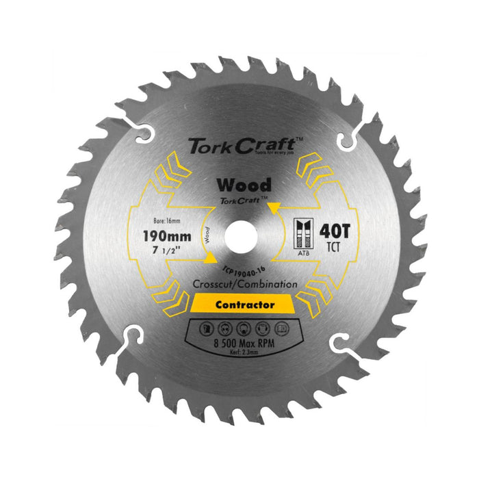 Tork Craft | Saw Blade TCT 190X40T 16mm Crosscut Combination Wood | Toolcraft South Africa Skip to content